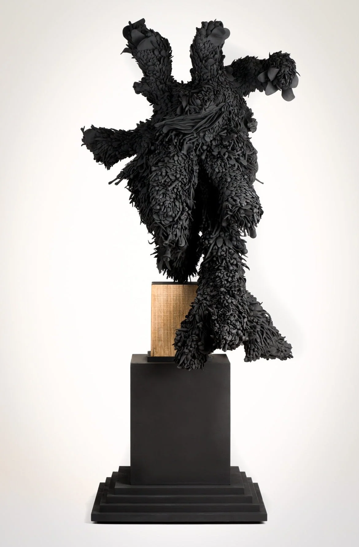 ‘A Shared Sensitivity’ formed part of the luscious ‘The Sanctuary; All That Is’ collection exhibited at both Dominik Mersch gallery and the Sydney Contemporary digital art fair, a collection of free-standing porcelain sculptures. With each element hand-moulded and built up on the body of the pedestal to resemble scales, petals or fur, ‘A Shared Sensitivity’ and it’s sister pieces bristle with the illusion of life, ready to take flight. Speaking to art critic Jackie Lemmon, Kitson describes her visceral works as “quietly seductive. They are provocative, because underneath they are quite disgusting. … They are hybrids of nature.” Juxtaposing the beautiful and the grotesque, they combine classical symmetry, abject seduction and a chimera-like material play (2) (3).